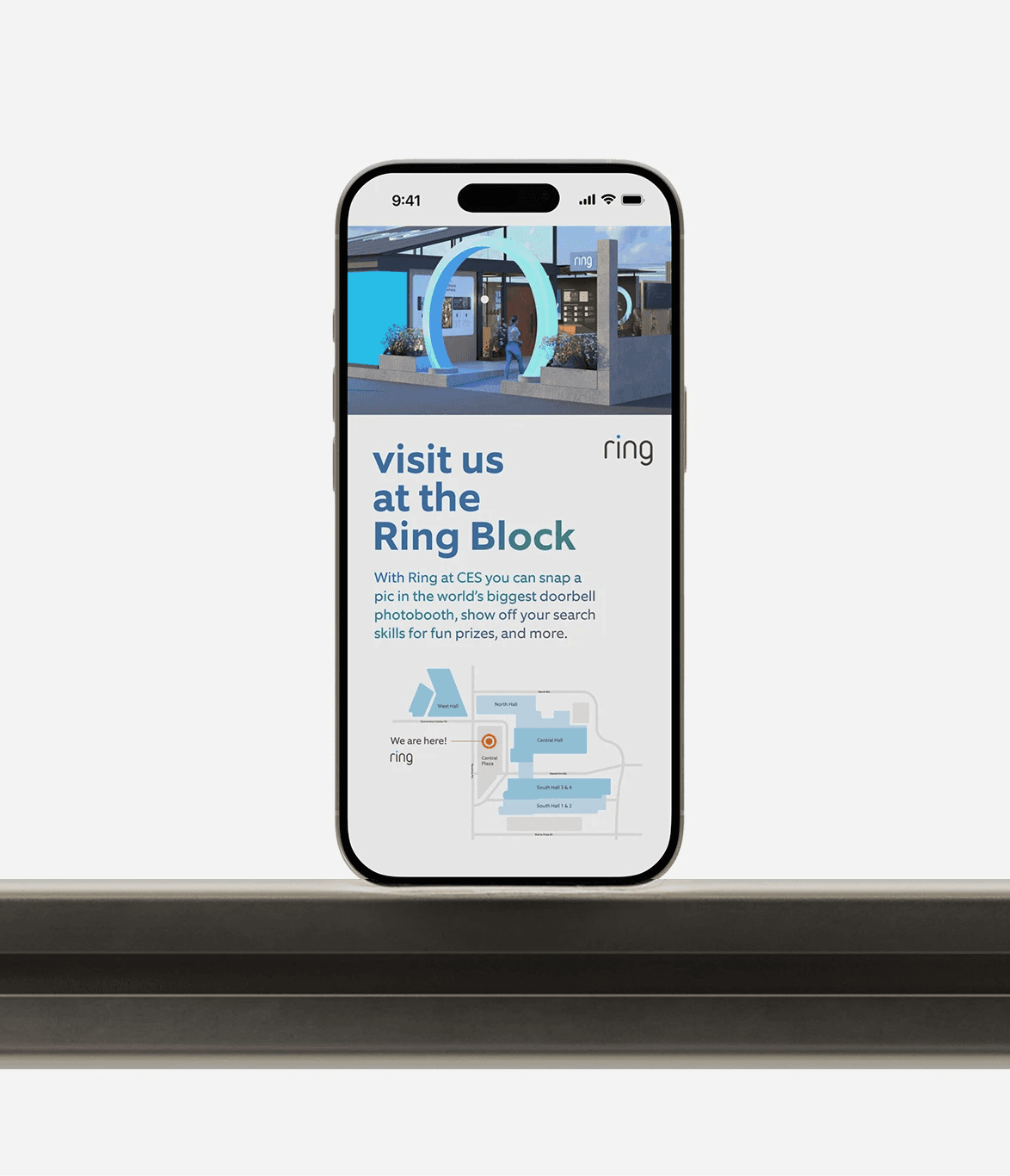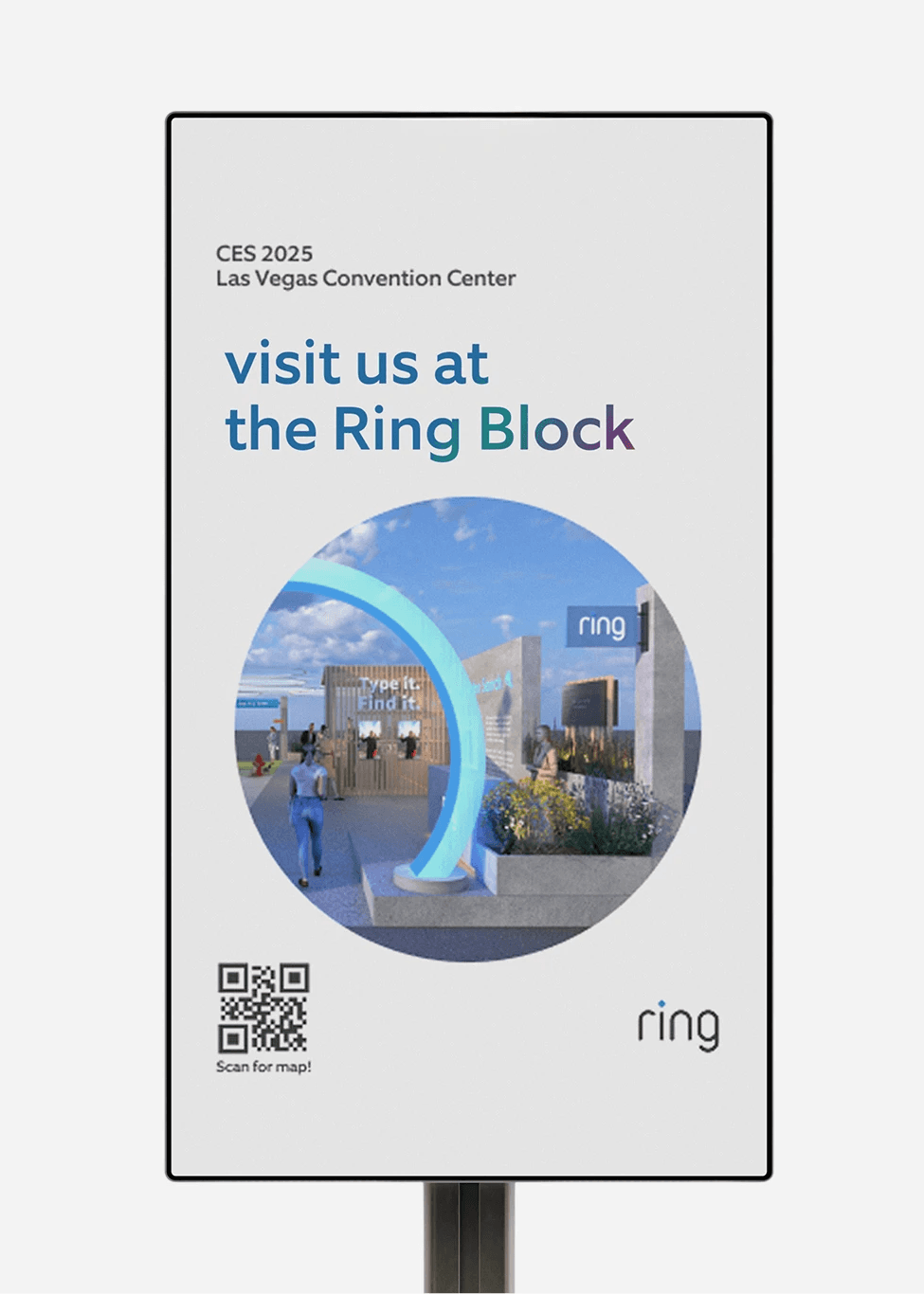The Ring Block translated advanced technology into a neighborhood-scale narrative. Visual systems and environmental graphics maintained brand consistency while making the ecosystem feel approachable and real.